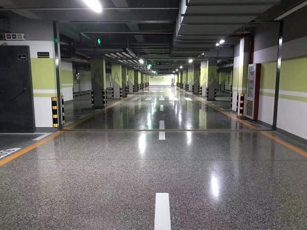 固化地坪也叫硬化地坪、钢化地坪、抛光混凝土地坪等,混凝土密封固化剂是一种活性的无色透明化学水性制剂,由无机物、化学活性物质和络合物组成采用独特配方,使用方便、无毒、不燃,可使混凝土表面的吸附性降低,防尘以及坚硬耐磨。其工作原理是与混凝土中大量的半水化水泥,游离石灰,钙发生化学反应(持续反应时间约为60-90天),形成一种永久性凝胶,该凝胶可在处理过的混凝土内部结晶成坚硬耐磨组织。从而得到一个无尘、